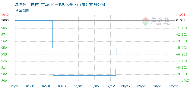 10月12日国产关于漂白粉的报价为950元/吨。漂白粉的规格:含量35%。该报价有效期为3天。报价提供方:佳恩化学(山东)有限公司。