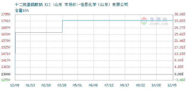 10月12日山东关于十二烷基硫酸钠 K12的报价为17500元/吨。十二烷基硫酸钠 K12的规格:含量95%。该报价有效期为3天。报价提供方:佳恩化学(山东)有限公司。
